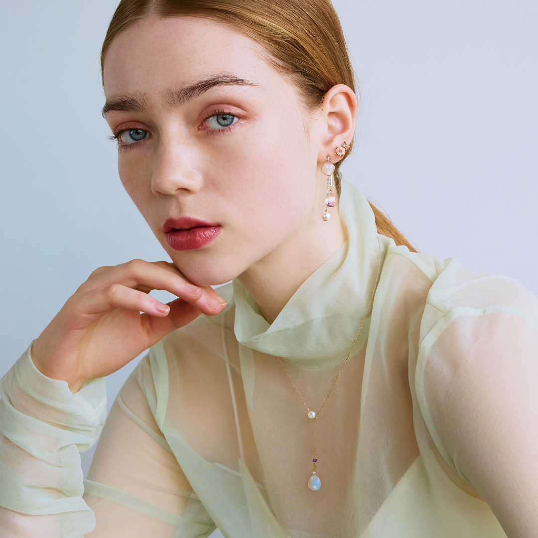 ネックレス K10YGオパール¥74,800 ピアス K18/K10YGオパール¥64,900 ※ネックレスはチャームとパールが取り外し可能な8way、ピアスは3way仕様